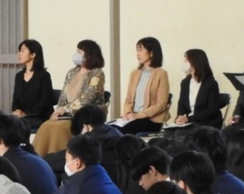 3月17日(月)、合格体験報告会が行いました。この報告会は、今年3月の卒業生で、大学に現役合格を果たした先輩方をお招きし、「進路決定の時期」「志望の動機」「学習のポイント」などについてお話をいただく進路行事です。1・2年生の進路意識の高揚を図り、学年末休業から新年度に向けての学習意欲を高めることを目的としたものです。この日は、総合型選抜、学校推薦型選抜、一般選抜(前期日程)で合格した計9名の先輩方をお招し、合格を勝ち取るまでの紆余曲折に満ちあふれたストーリーについて語っていただきました。