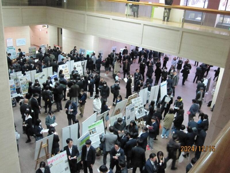 12月15日(日)宮城県庁講堂において「みやぎ高校生フォーラム―私たちの志と地域貢献―」が開催され、本校生徒会執行部より生徒会長のY.Mさん(2年)、生徒会副会長のT.Mさん(2年)が参加しました。2人は本校総合的な探究の時間における研究活動について、各学年でどのような活動が行われているのかをポスターにまとめ、発表しました。このフォーラムは、宮城県教育委員会の主催によるもので、高校生が日々の学習や体験等を通じて培ってきた志や将来への思いを発表や意見交換を通して共有し、自らが社会で果たすべき役割について考えることを目的として、例年開催されている行事です。この日はポスターセッションのほか、「地域をもっと元気に!わたしたちが考える地域の未来」をテーマとした全体ディスカッションも行われ、充実した一日となりました。