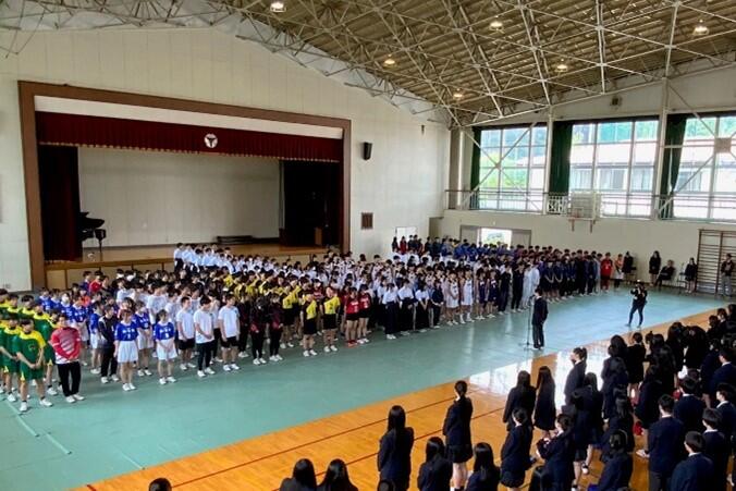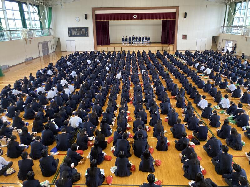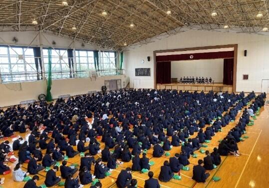 最後に、教頭より新クラスの担任・副担任等が発表され、新学期を迎えた生徒たちの喜びと期待と希望に満ちあふれた声が体育館に響きわたりました。