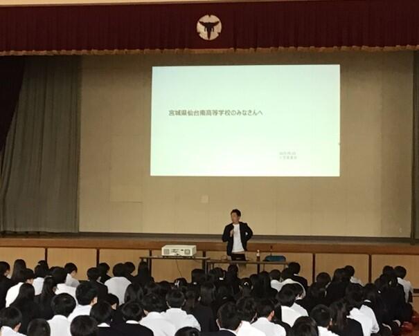 12月3日の放課後に、「あの人の『仕事!』論。」の第2弾が行われました。今回は、東北放送の報道部で記者をしている千葉陽太さんがゲストとして来てくださいました。記者という仕事のお話や、震災や災害の取材にあたった際のお話を聞くこともできました。生徒からの質問もあがり、世の中についての知見を広げる良い時間となりました。