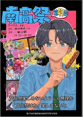 10月1日(水)、後期始業式が行われました。はじめに、生徒会新役員認証式が行われ、9月の生徒会選挙で当選した生徒会長(2年I.Mさん)および信任された生徒会副会長(2年S.Yさん・2年W.Sさん)の認証がなされました。続いて後期始業式が行われ、熊谷校長よりNHK連続テレビ小説「あんぱん」を題材とした講話をいただきました。熊谷校長は、スライドを用いながら、人気アニメ「アンパンマン」の作者やなせたかし氏の作品に込めた思いや製作にまつわる数々の艱難辛苦についてわかりやすく説明をした後、テーマソング「アンパンマンマーチ」に触れながら、「生きるよろこび」「自分の存在意義」「他者を救う無償のやさしさ」「笑顔の力」「今を生きることの大切さ」などいくつかのキーワードを示しつつ、生きることの意味や幸せの本質についてお話をされました。また、講話の最後には、令和8年度に創立50周年を迎えるにあたり、「50周年記念ロゴマーク」「仙台南高校マスコットキャラクター」を募集する旨のお話もなされました。