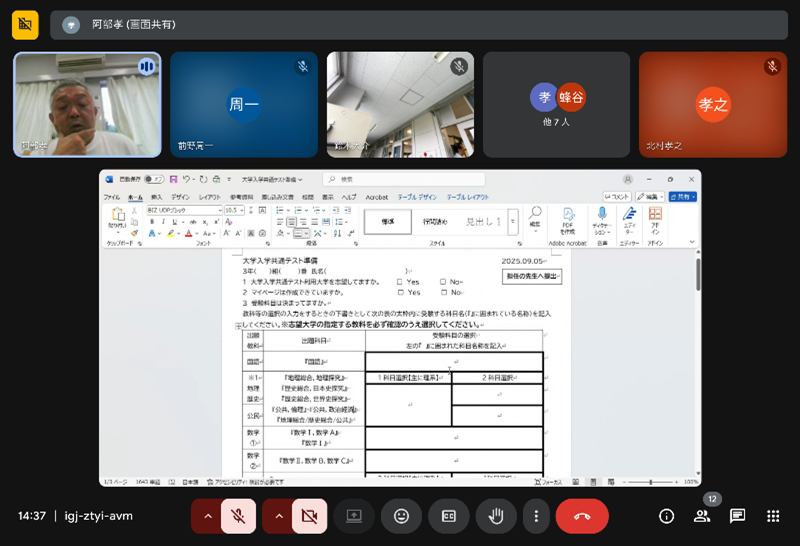 9月5日(金)、進路指導部主催による3年生対象の「共通テスト出願説明会」をオンラインで実施しました。大学入学共通テストは、本年度からWEB出願となります。7月には大学入学共通テストマイページの作成に関する説明会を実施したところですが、今回は、WEB出願に当たっての注意点や科目登録の留意点等について本校進路指導部長よりお話をいただきました。説明会の後、夏休み明けの受験勉強の進め方や心構え等についての講話もいただきました。講話では「夏休み明け、まずは落ち着いて勉強に取り組むこと、9月は前期末考査があるので、特に推薦型選抜を考えている生徒は、十分に対策をして臨むこと、10月には球技大会があるが3年生は今なすべきことに全力で取り組むこと、受験は団体戦だがまずは個人として自分にしっかりと向き合うこと、受験に向かう意識を高く持ち、休み時間の過ごし方も含め、自分に厳しくすること、睡眠や食事を十分にとり授業第一の姿勢を大切にすること」など様々なアドバイスをいただきました。これからいよいよ本腰を入れて受験勉強に取り組む3年生にとって、気持ちを新たにし、更に意識を高めるよい機会となりました。