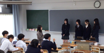 10月29日(水)、地域団体の方々8名の皆様をお迎えし、「1学年地域課題研究」の中間発表会を実施しました。この中間発表会は、クラス毎に6月より活動を続けてきた地域課題研究の現段階での研究成果を各グループが発表し、その一つ一つを地域団体の方に見ていただき、指導・助言を頂戴するというものです。生徒たちは、中間発表会でいただいた助言をもとに更に研究活動を続け、年明け1月末に最終的な発表を行います。地域団体の方々からは、高校生の視点ではなかなか気づきにくい、社会人や企業からの視点を数多く提示していただき、発表した生徒たちは、研究を更に深めるヒントをたくさん得ることができました。発表後の質疑応答も盛んに行われ、充実した発表会となりました。