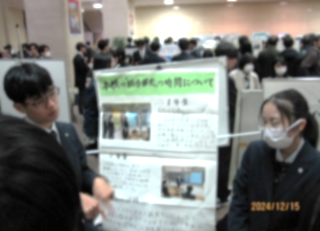 11月6日(木)に行われた仙台三高主催の「イノベーションフェスタ」に、本校2学年課題研究班から3班が参加し、ポスター発表をしました。会場では、校外からの参加ということもあり、多くの三高生や県外の高校の生徒が本校生の発表を聞きに来てくれました。発表に対する質問は基本的なことから発展的なものまで多岐にわたり、参加した本校の生徒たちは、自分の研究をより深く理解するきっかけになったと思います。質問の内容だけでなく、質問の仕方も参考になったようで、自分たちも他の発表を聞くときは、聞き終わった後に質問をしてみようと思ったと話していました。