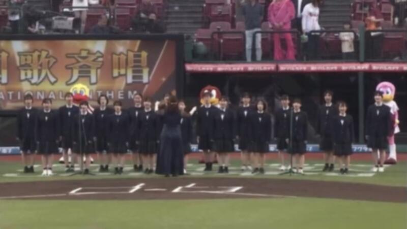 音楽部合唱団が「楽天モバイルパーク宮城」で国歌斉唱を披露しました。