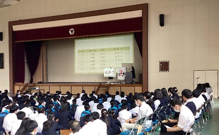 5月10日(金)、学研より講師として本間裕子先生をお招きし、3学年対象の「小論文講演会」を開催しました。小論文の基本事項の説明から始まり、近年頻出している資料型小論文の読み取り方、受験レベルで求められる考え方、入試小論文の取り上げられるテーマのトレンドなど、最後は志望理由書の書き方まで、約2時間レクチャーしていただきました。参加した生徒たちは、考えの深め方や、志望理由でどう熱意を伝えるかという内容を熱心にメモしていました。