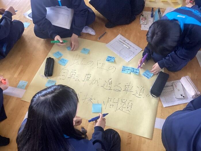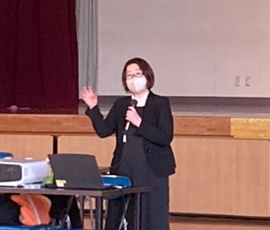 講師としてお招きしたのは、慶應義塾大学環境情報学部准教授の大木聖子先生です。大木先生からは、具体的な場面を想定した災害時の行動の仕方や発生する問題などについてお話をいただきました。その後、避難所の運営をテーマにグループワークを行い、結果を代表者が発表し、全体で共有しました。この講話には、町内会の方々、他校の学校教員、本校元職員など、外部からの参加者もたくさんおいでになり、地域ぐるみで防災について考える貴重な機会となりました。