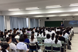 7月25日(金)、夏期課外講習後の時間を利用し、「あの人の『仕事!』論。」を実施しました。これは、企画部(担当:菅原未来先生)の主催で、様々な分野で仕事をしている人材をゲストとしてお招きし、その仕事を選んだ理由や、やりがい、難しさ、仕事をする上で大切にしていることなど、多方面にわたってお話をいただくという新しい企画です。社会人のお話を聞き、自分のキャリア形成に生かすことがねらいです。第1弾のゲストとしてお迎えしたのは、仙台赤十字病院NICU(新生児特定集中治療室)に勤務されている看護師の大場有紗さんです。大場さんは、幼いころから災害と医療に興味をもち、大学では災害看護学を専攻しました。現在は、災害発生時に被災地で活動する赤十字の救護班で活動することを目標としています。この日は、参加した生徒たちとの間で活発な質疑応答がなされ、たいへん充実した時間となりました。