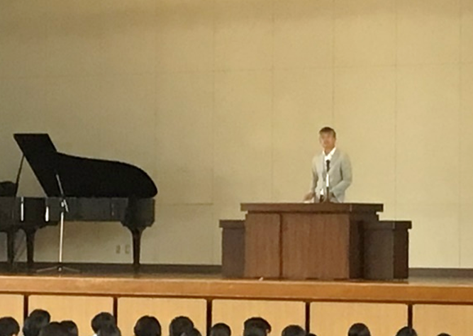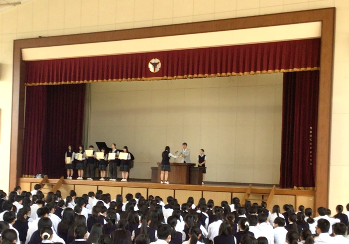 8月21日(木)、賞状伝達式および夏休み明け全校集会が体育館にて行われました。暑さを考慮し、短時間での実施となりました。賞状伝達式では、合唱部が諸大会での賞状を伝達されました。続く校長講話では、熊谷校長より「努力が即結果に結びつくとは限らない。努力の先にはまず成長があり、その成長の先に結果がある。失敗も成長の過程、つまづきは当然ととらえ、試行錯誤を積み重ねてほしい。日々の小さな成長の先に、必ず結果が表れる。そのことを信じ、夏休み明けも学校生活の様々な場面で努力を続けてほしい」とのお話をいただきました。
