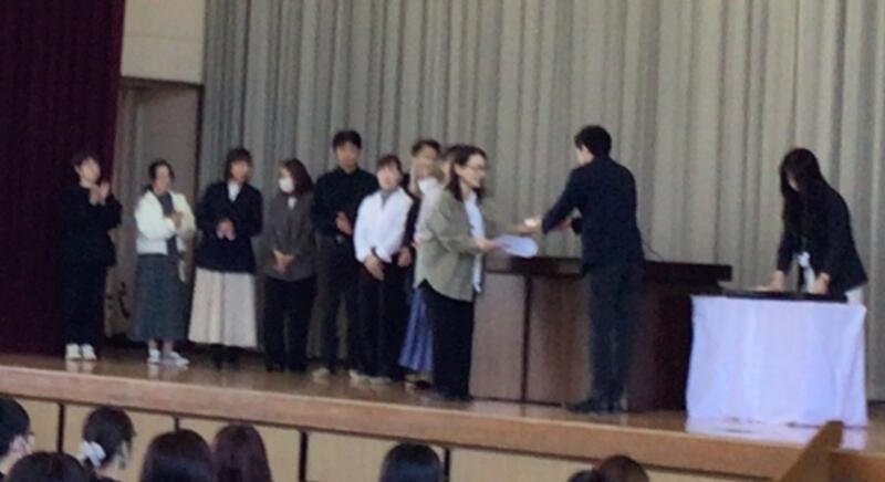 3月30日(月)離任式が行われました。今年度、退職・転出となる職員は13名です。式では、離任者より一人ずつ挨拶をいただいたのち、生徒会執行部の生徒より花束が贈呈されました。最後に、校歌斉唱で式が締めくくられました。これまでのお力添えに感謝するとともに、新しい場所でのますますの御活躍、御健康と御多幸をお祈り申し上げます。